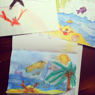 Hi there! I wanted to share this adorable craft with you… made from a recycled cardboard box (Love using recycled materials !) I’ve been working with two awesome little artists this past week and we’ve done AMAZING projects! Hurray! We spent maybe 4 hours working on this fun aquarium craft.You can create a magical underwater world with fish, whales, squids, seahorses, crabs…. whatever you want with an empty box and a couple supplies!