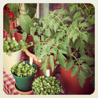 | A “container garden!” Veggies and herbs growing! Want tips on how to make an edible garden? check out this link! |