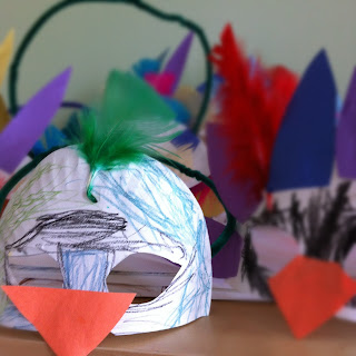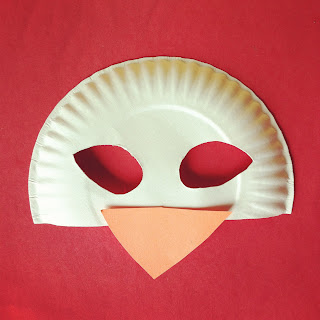 | Step 1: Cute the plate in half and cut out two eye holes. |
