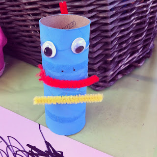 | Pine cone critters: some kids looooved the googly eyes! |