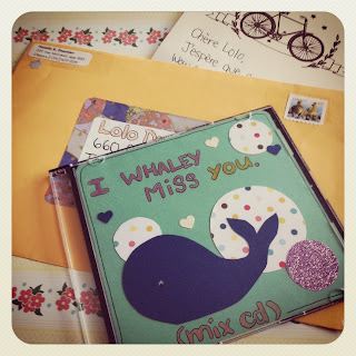 I’m pretty lucky to have some amazing people in my life. Over the years, it seams that some friends have dispersed a little, moving away to start new adventures. Recently, my bestest gal Lolo moved to another city. I miss her like crazy. At least we can send each other letters and surprises like these ones through the mail! I made her a special mix cd and check out the cover….. I WHALEY miss you! and there’s a whale! Hah!
