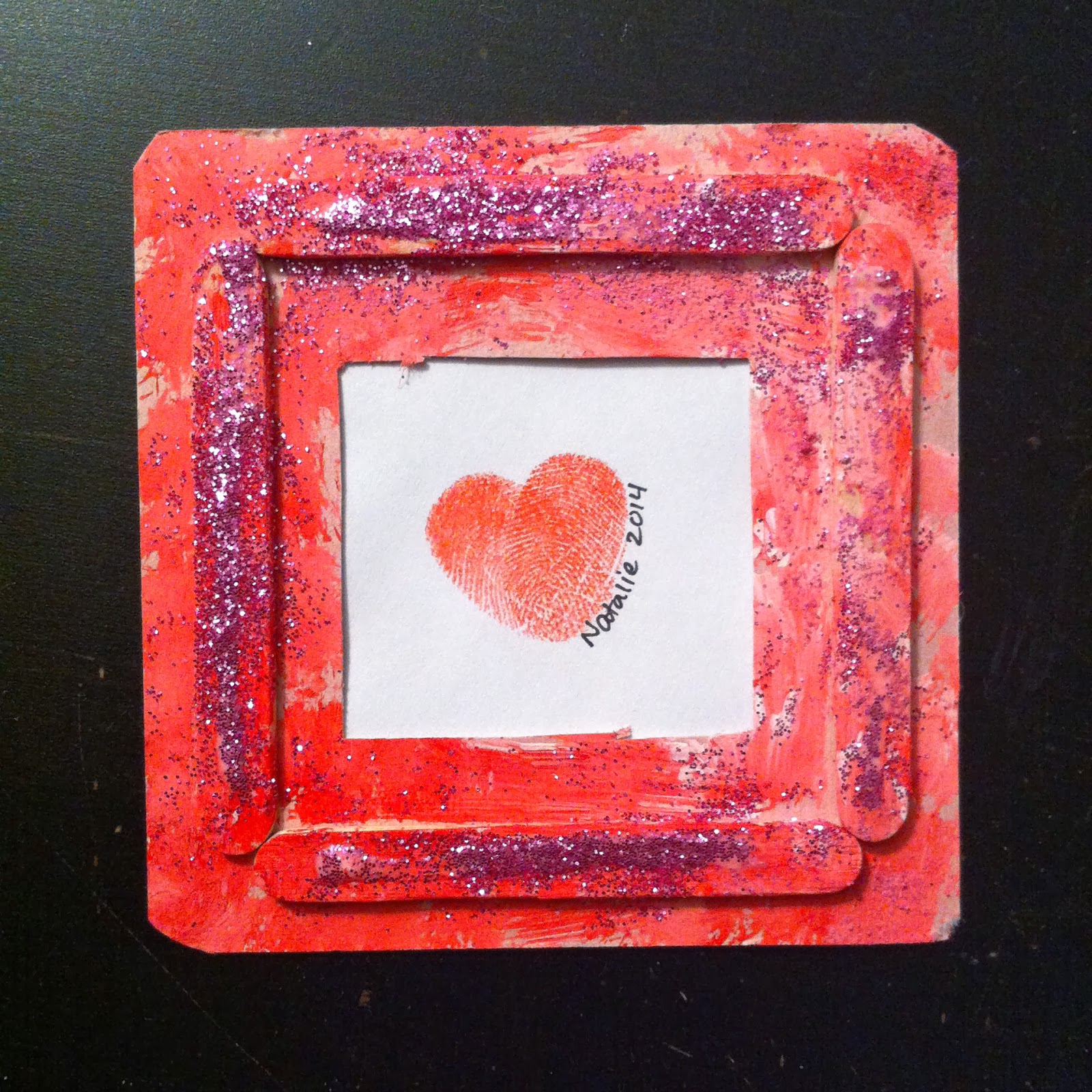 Hi again! I just wanted to show you the fun things we made for mom & dad in class for valentine’s day. We did two fun project! “Je t’aime” (that’s french for I love you!) heart stamp cards and mini frames with heart fingerprints! so simple but BEAUTIFUL!