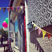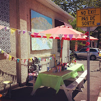 | Just outside Raw Sugar Café! I of course brought some colorful bunting! |
