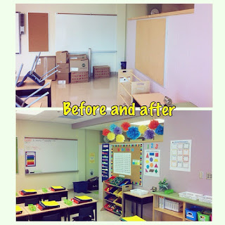Hi there! What a crazy two weeks. After lots of extra hours and lots of running around, my classroom is all functional (and beautiful!) and has had 20 tiny little kiddos learning, playing and laughing in it all week long! I wanted to give you a tour since there are a lot of hand made/DIY things in there.