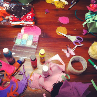 | Our craft table!!! Working hard! |