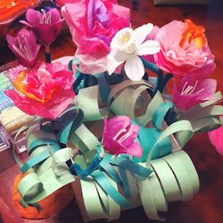 | Step 6: Add flowers on pipe cleaner stems. You can use artificial ones or make them from tissue paper using this tutorial. Tape them inside the box. |