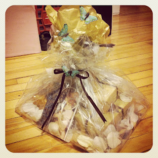 And then the wrapping! WOAH! Everything in little wooden boxes, plus feathers, rose petals, birds, butterflies, ribbons, beautiful papers! We make a pretty good team Lolo (even if it did take us 3 hrs to do! Heh)