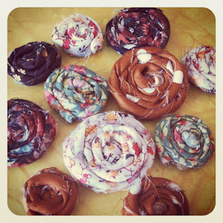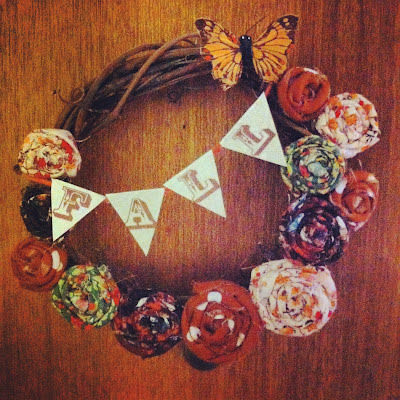 Today is a perfect Fall day AND I have the day off… so why not make a Fall craft!? Time for a new wreath! I used fabric scraps to make little rosettes, but no sewing is required! Just a glue gun! Simply follow this step by step tutorial I found online!