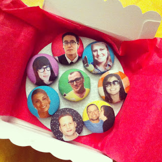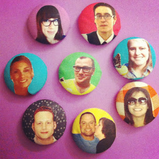 Hi there! A friend of mine recently celebrated a birthday and I wanted to make him a special gift! So I decided to make him a slighty creepy gift that I titled fridge friends! I printed tiny images of his favorite people onto iron-on transfer paper and placed it onto colourful fabric. Then I covered some buttons with the decorated fabric and glued a magnet on the back! It’s basically Fabric-Covered Magnets…with pictures! Now, we can always all hang out…on his fridge!