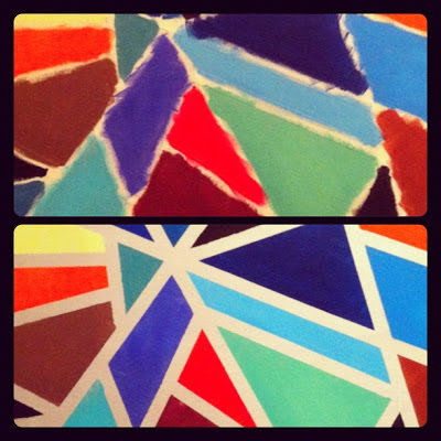 ② Cut long strands of tape and create various “sections” on the canvas. Have fun with diagonal lines!