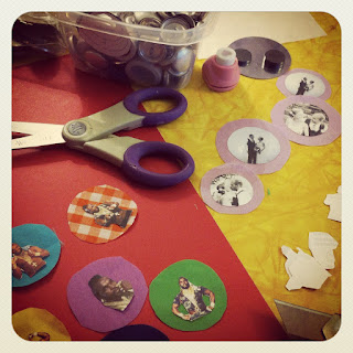 Hi there! Christmas is in 3 days and I’m busy crafting way this weekend! One of my favorite things to work with are iron-on transfers. My favorite are the Avery Dark T-Shirt Transfers… they never fail me! Lately, I love making fabric covered button-magnets and ironing a picture to the fabric before I stretch it onto the button. I’ve been making new creations for xmas gifts! Wanna see?