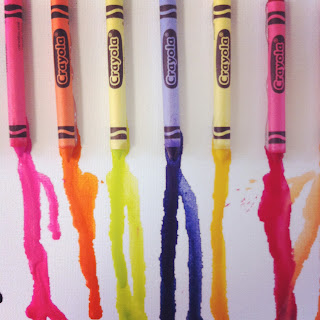 Look how wonderful this turned out! We let the kids pick pout their crayons, draw a little on the canvas and place the crayons however they liked on the canvas (we hot-glued them on for them.) Then we just melt them with a heat source… and voilà! Awesome abstract, pop-art-esque original artworks!