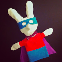 Last year, during teacher’s college the professor of my Preschool Class introduced me to Superlapin, a 5 year old bunny/superhero). I never forgot him. I loved him instantly. This is Superlapin, over there on the left. ←