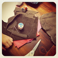 | Materials: thread & needle, crafting cotton (ears & tail), corduroy, 2 buttons, stuffing |