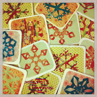 Hi there! I have a special treat for you guys today… Miss Jessica’s recycled snowflake cards! My fantastic colleague and head teacher at our school let me share her fabulous cards on the blog. Best part about them? She reused old wrapping paper and turned it into fancy snowflakes… then into cards for the kids at school! Hooray Miss Jessica! I guess all that talk about being green and recycling at school has rubbed off on us! xo