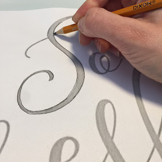 | I trace over my design, and the graphite paper underneath prints it on the canvas. |