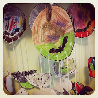 So when Friday craft came, what do you think the best theme could possibly be?! HALLOWEEN of course! I decided to create these “spooky” mobile with my students. They each had the outlines of Halloween things photocopied on a piece of cardstock (I drew them with a sharpie!). They decorated it however they wanted! Check out some amazing results!!