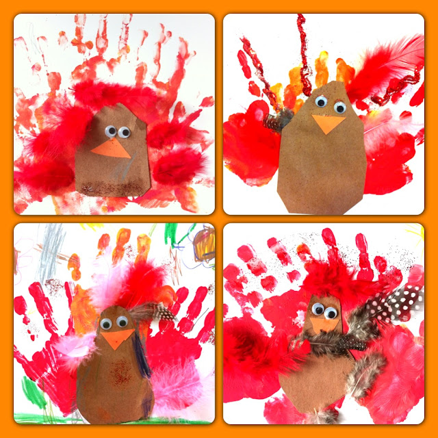 Hi there! I hope everyone is having a nice thanksgiving weekend. This morning, I made a list of all the things I was thankful for. I feel so very blessed with all the gifts in my life. One of those is certainly the wonderful job I have as an educator. What amazing and hilarious kids I get to work with! So thankful! And speaking of them… Here’s some fun handprint turkeys we made on Friday for Thanksgiving!