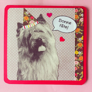I wanted to share with you guys my latest fun DIY project… my “Woof Cards”. Last summer, I went on a Value Village trip in North Bay with my cousin. There, I found an illustrated guide of all the different dog breeds, and thought CRAFT TIME! It’s in black & white and has a nice retro/vintage feel to it, so I decided to use it to make fun cards. I picked up a fun pack of blank patterned cards with enveloppes and voilà! So simple!